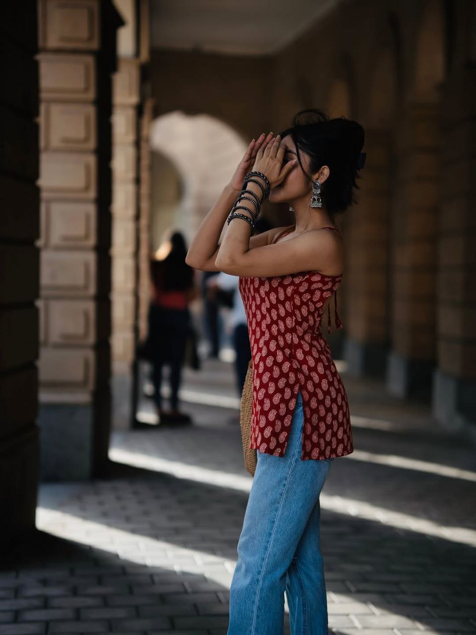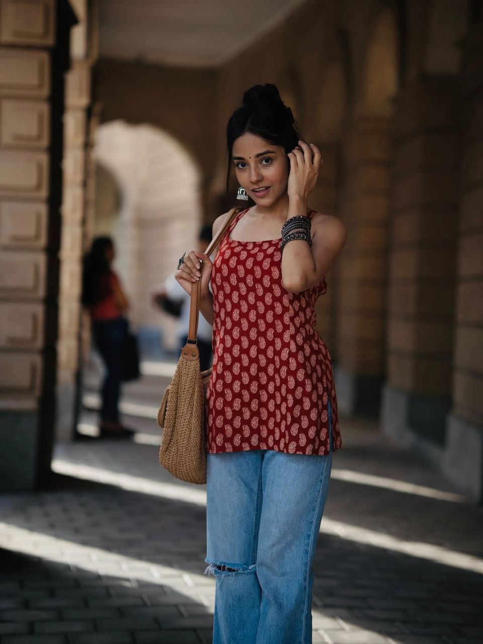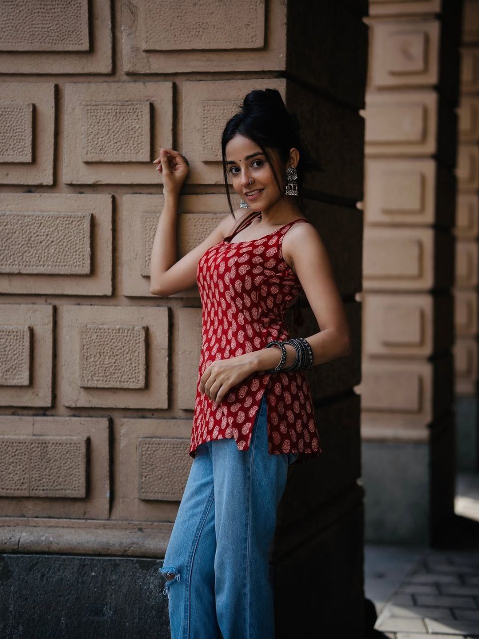 Alia deep back short kurti features a traditional handblock print bagh pattern, giving it a rich ethnic look. Made from breathable cotton fabric, it’s perfect for warm weather and casual outings. The sleeveless cut adds a modern touch, while the straight hemline offers comfort and ease of movement.